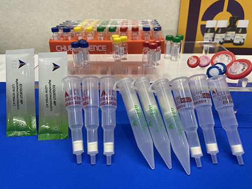 2025年11月12日(水)・13日(木)、昨年に引き続き「日本法科学技術学会 第31回学術集会」がアートホテル日暮里ラングウッドで開催され、弊社も取扱製品を出展いたしました。 弊社ブースでは、KURA biotech社の加水分解酵素(β-グルクロニターゼ)、Quechersとバイアル瓶、シリンジフィルターを展示し、学会参加者の皆様にご紹介しました。 各都道府県の科捜研の方や、法医学に携わる大学関係者の皆様にお越しいただき、加水分解酵素のラインナップの違いやQuechersとの使い分けについてご質問をいただきました。 また、バイアルについては価格面で魅力を感じていただき、皆様のお役に立てる製品であると実感しました。特に加水分解酵素では、バッファー不要のオールインワンタイプ「B-One」や高活性タイプ「BGTurbo」に高い関心を寄せていただき、使用方法について具体的なご相談もいただきました。 今回の出展は、より多くのユーザーに弊社製品を知っていただく貴重な機会となり、非常に有意義な結果となりました。 今後も様々な分野の学会に積極的に参加し、弊社取扱製品がお客様の課題解決に貢献できるよう、情報発信と提案を続けてまいります。 次回は来年11月に同会場で開催される予定です。 |